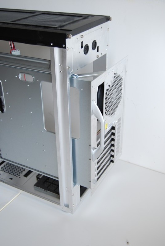 Molto interessante il piatto della motherboard che può essere estratto posteriormente dal case tramite due guide dotate di cuscinetti a sfera.