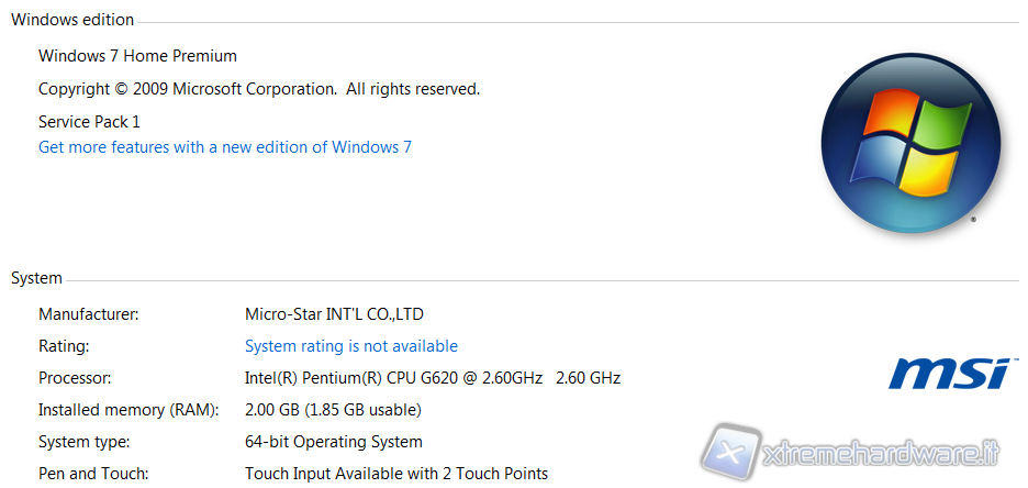 Il sistema operativo utilizzato è Microsoft Windows 7 Home Edition in versione x64 ed equipaggiato di Service Pack 1.